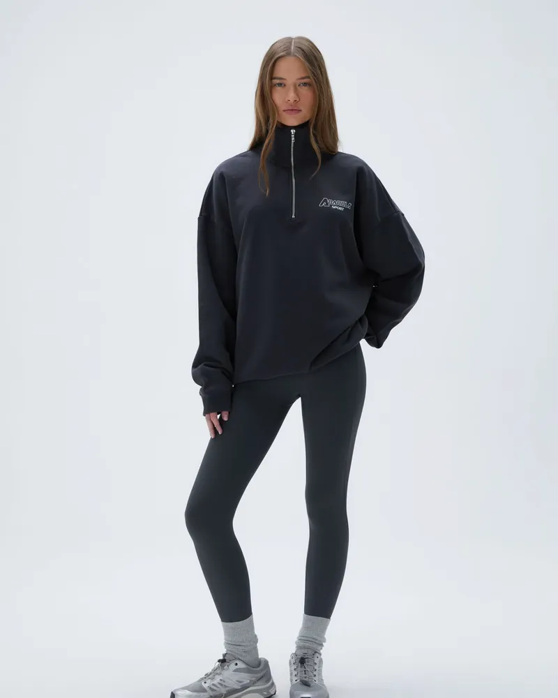 Stay cozy this winter with the Adanola "A" Oversized Funnel Neck Zip Sweatshirt in Graphite Grey. This stylish and comfortable sweatshirt is your ideal companion for chilly days and outdoor adventures. Its half-zip design allows for easy layering, making it perfect for post-gym outings or casual outings.