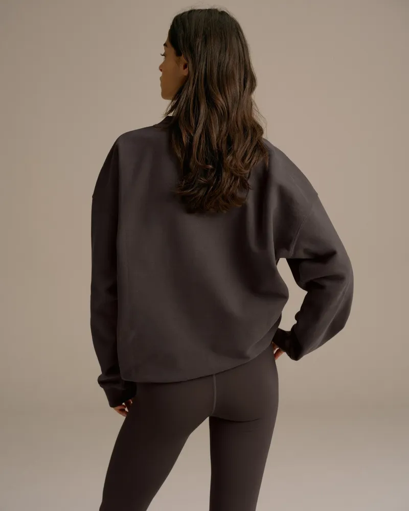To maintain the quality of your sweatshirt, follow these care instructions: wash inside out on a gentle cycle, preferably by hand, and lay flat to dry. Ironing once dry will help restore the fabric’s softness. Please note that the Coffee Bean color may vary slightly due to ongoing fabric production.