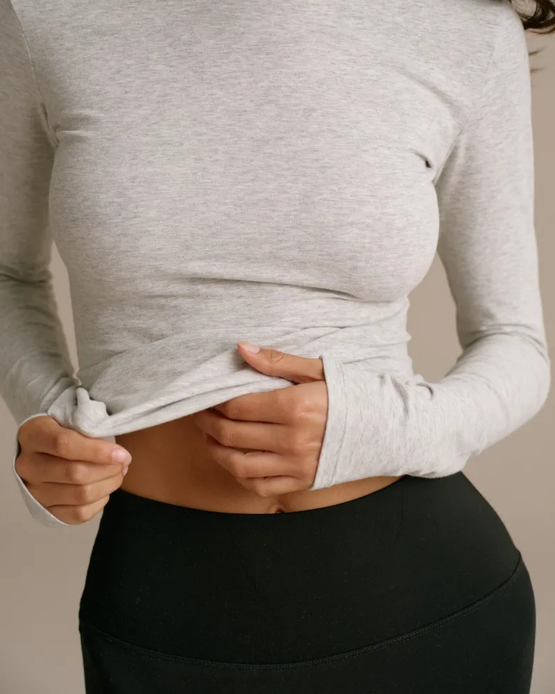 Adanola Cotton Long Sleeve Top - Grey Melange