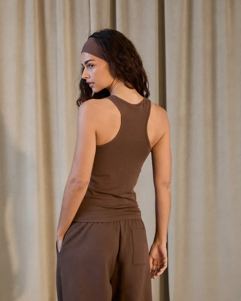 Adanola Henley Vest Top - Mocha Brown
