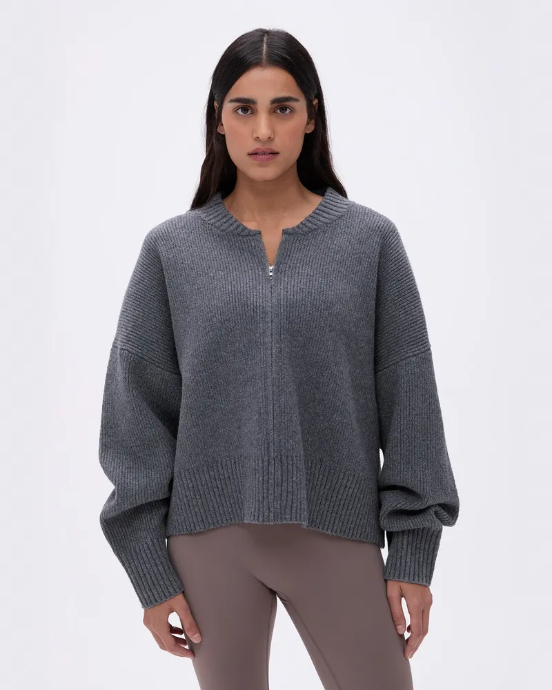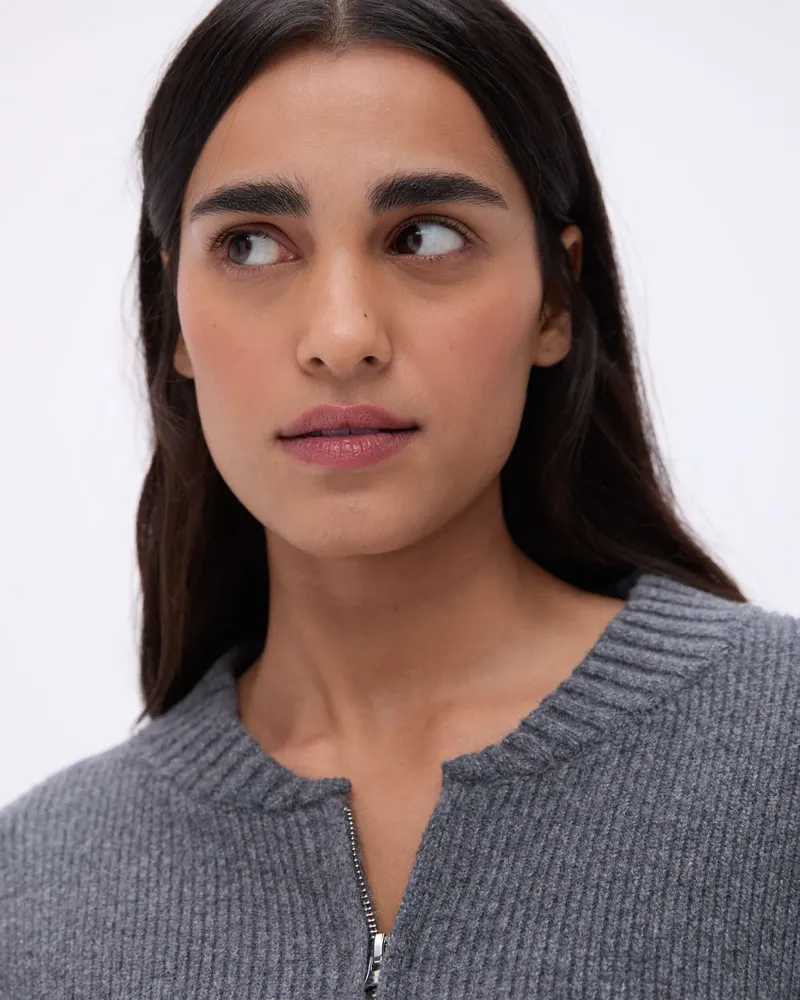 - Snug 2x2 ribbed cuffs and hem for a polished finish