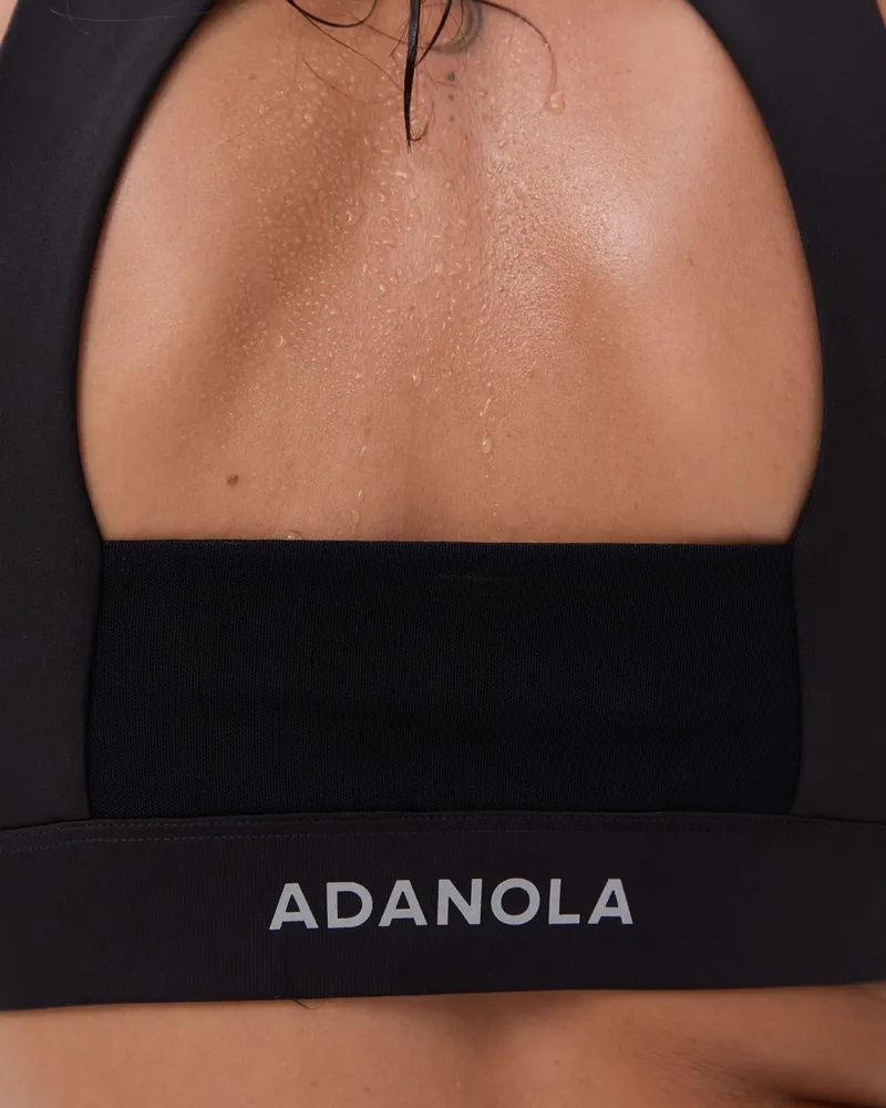 Elevate your workout wardrobe with the Adanola Mesh Open Back Bra - Black. Order yours today and experience the difference in support and comfort during your runs!
