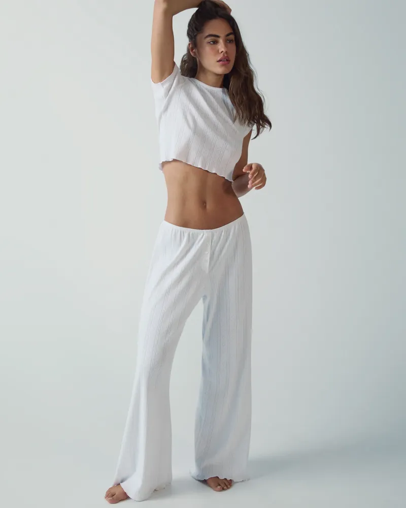 The Adanola Pointelle Trouser - White is your go-to choice for cozy nights in or casual outings. Its soft material feels delightful against your skin, making it a piece you won’t want to take off. Perfect for pairing with your favorite tee or tank, these trousers effortlessly transition from home to social gatherings.