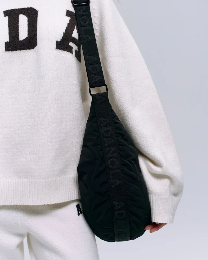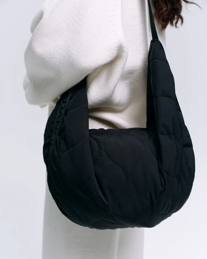 The Adanola Quilted Branded Slouchy Bag - Black features a unique onion patterned quilt that sets it apart from ordinary bags. Ideal for those who appreciate timeless essentials, this bag is designed to fit into your daily routine with ease. Its adjustable strap allows you to switch up your look, making it as functional as it is fashionable.