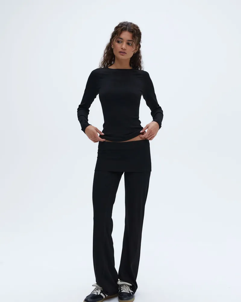 Don’t miss out on the ultimate blend of comfort and style. Shop the Adanola Rib Fold Over Pants - Black today and redefine your casual wardrobe!