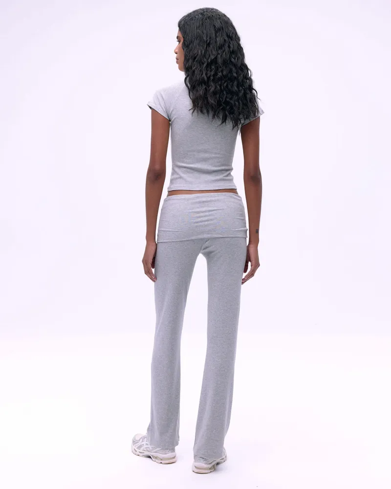 Experience the perfect blend of style and comfort with the Adanola Rib Fold Over Pants - Grey Melange. Designed for versatility, these pants are ideal for yoga sessions or casual lounging. The soft ribbed fabric gently hugs your body, giving you a flattering fit you’ll love.