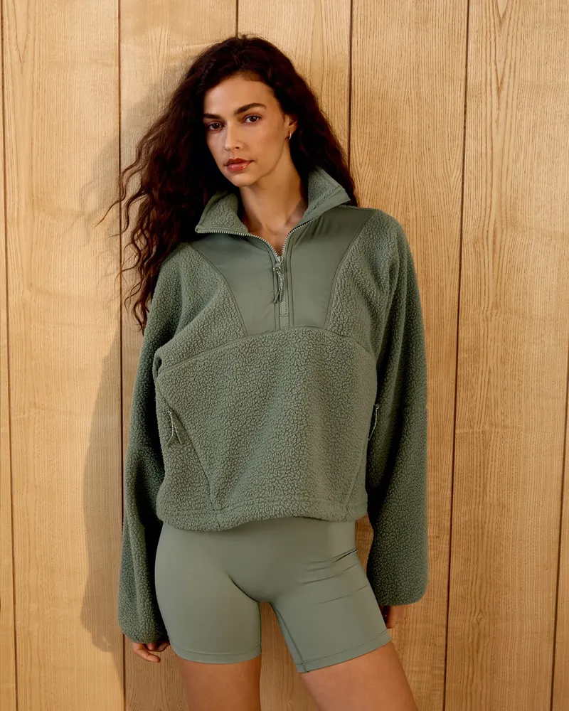 Discover the ultimate layering piece for your wardrobe with the Adanola Seam Detail Quarter Zip Polar Fleece in Eden Green. This stylish and functional fleece is perfect for cool summer mornings and adds a trendy touch to your casual outfits.