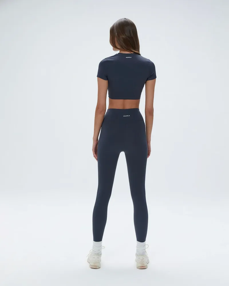 Adanola Short Sleeve Crop Top - Midnight Blue