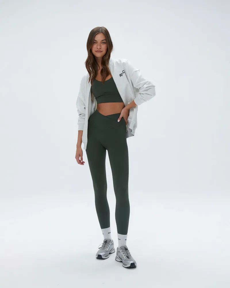 Adanola Sportswear Oversized Full Zip Funnel Sweatshirt - Light Grey Melange / Dark Olive