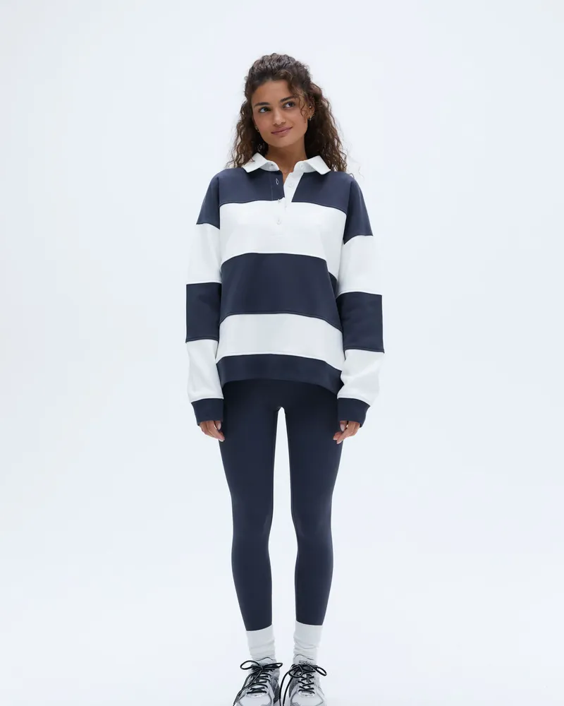 Adanola Stripe Oversized Henley Sweatshirt - Midnight Blue/Marshmallow White