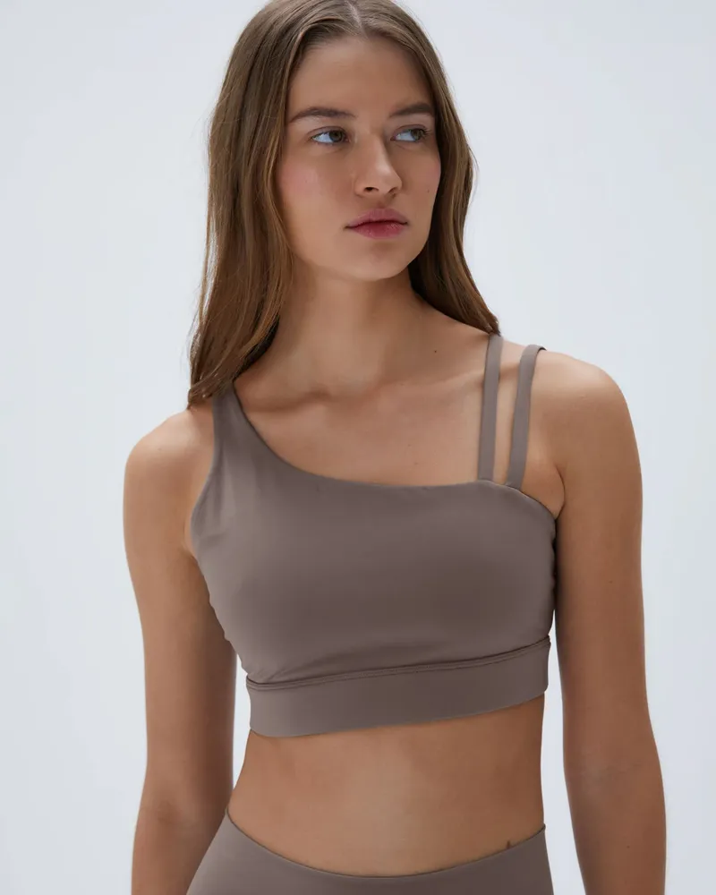 Elevate your everyday comfort and style with the Adanola Ultimate Asymmetric Double Strap Bra - Cocoa Brown. Designed for those who value both function and fashion, this sports bra ensures you look great while feeling even better.