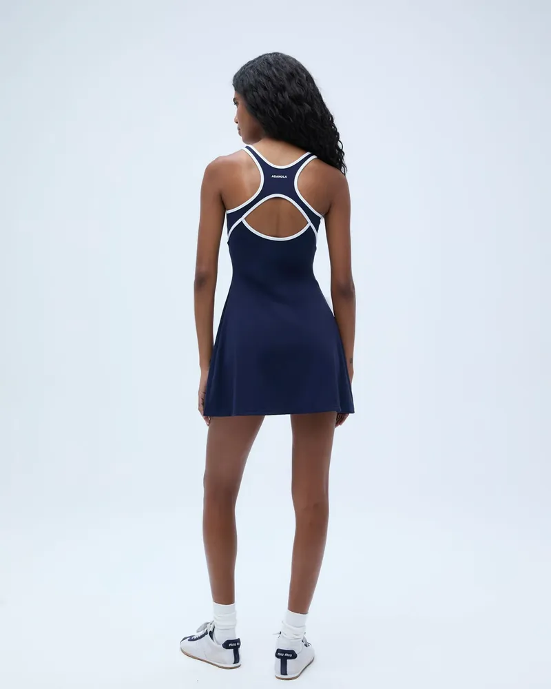 Elevate your spring and summer wardrobe with the Adanola Ultimate Binding Detail Dress - Navy, designed for both on and off the court. This sporty dress combines style and functionality, making it the perfect choice for your active lifestyle.