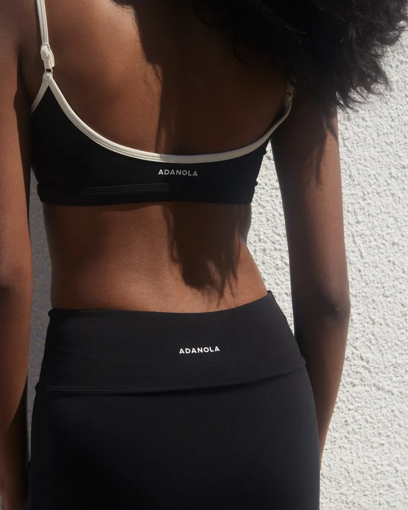 Elevate your activewear collection with the Adanola Ultimate Contrast Strap Scoop Bra in Black/Cream. Designed for style and functionality, this sports bra is perfect for low-impact activities like yoga, Pilates, barre, and walking.
