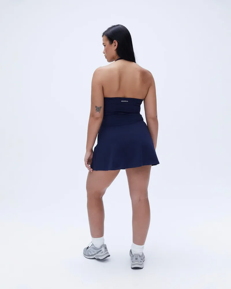 Elevate your activewear collection with the Adanola Ultimate Halter Neck Dress - Navy Blue. This stylish and functional dress is perfect for both on and off the court, combining comfort with a chic aesthetic.