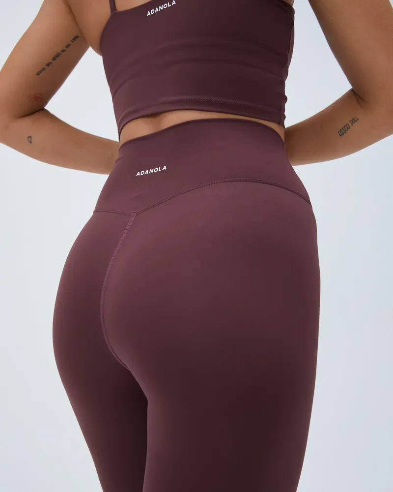 The Adanola Ultimate Leggings - Burgundy feature a high waistline that contours your body while offering extra support during your slow movement workouts. Available in three lengths: Regular (62.5cm), Tall (72.5cm), and 7/8 (57.5cm), there's a perfect pair for everyone. Whether you prefer a full-length style or a cropped look, these leggings are designed to meet your needs.