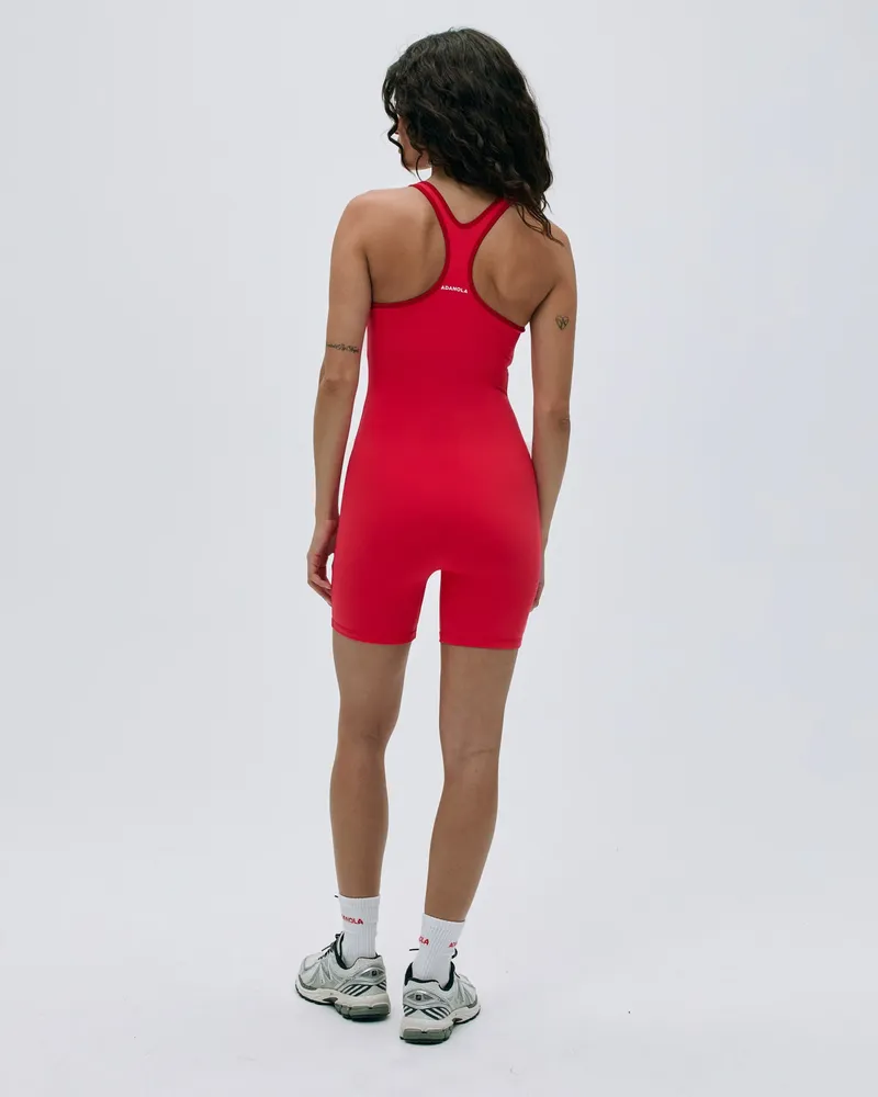 Adanola Ultimate Racer Back Piping Romper - Apple Red