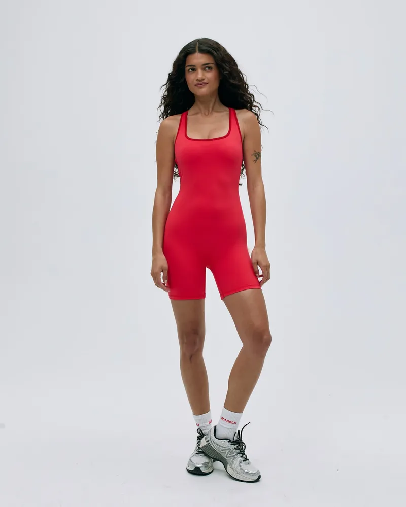 Discover the Adanola Ultimate Racer Back Piping Romper in vibrant Apple Red, your go-to piece for effortless style. This romper is designed for those who value comfort and versatility, making it perfect for any occasion, whether you're heading to the gym or enjoying a casual day out.