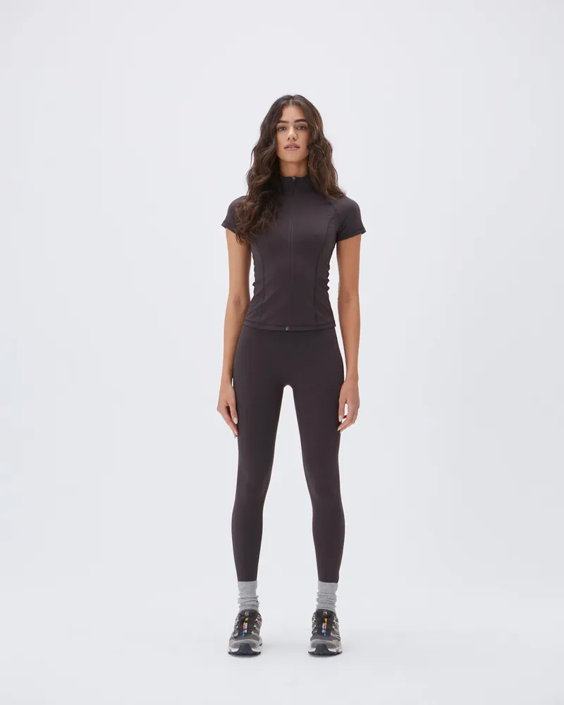 Adanola Ultimate Short Sleeve Zip Up Top - Coffee Bean