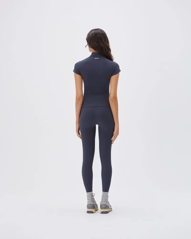 The Adanola Ultimate Short Sleeve Zip Up Top - Midnight Blue is crafted from a premium blend of 70% polyamide and 30% elastane, ensuring durability and a soft touch against your skin. The zip-up opening not only adds convenience but also a trendy edge to your look. Pair it effortlessly with our ultimate leggings for gym sessions or style it with your favorite jeans for a relaxed yet chic outfit.
