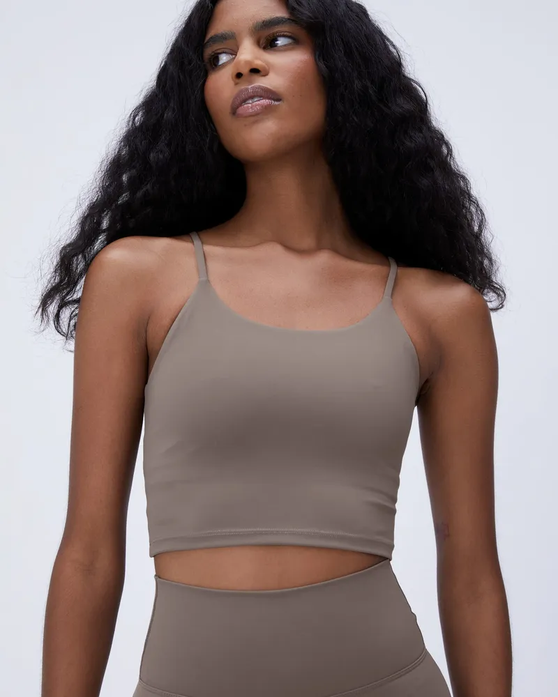 The Adanola Ultimate Tank Bra - Cocoa Brown features a long body and skinny straps, ensuring a flattering fit for all body types. Its high neckline provides additional coverage, making it ideal for various medium support activities such as yoga, pilates, or cardio. With its removable padding, you can easily adjust the bra to suit your comfort level.