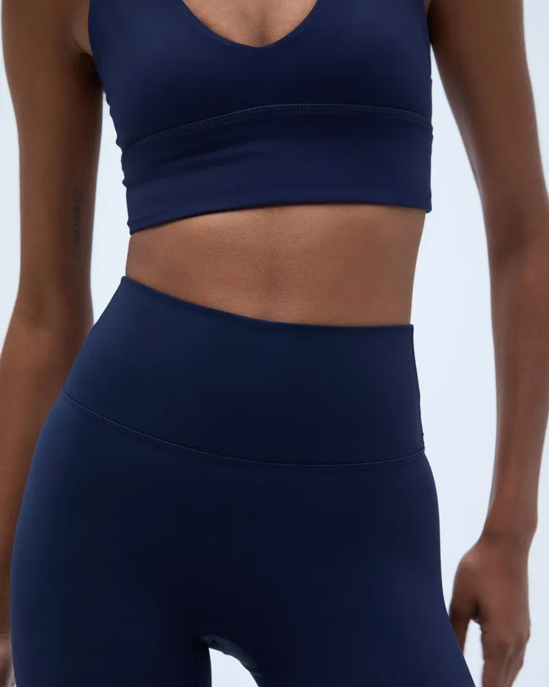 Elevate your activewear collection with the Adanola Ultimate Triangle Bra in Navy Blue. Crafted from recycled activewear fabric, this sports bra is designed for both style and sustainability. Perfect for low-impact activities, such as yoga, pilates, and barre, it effortlessly combines comfort and performance.