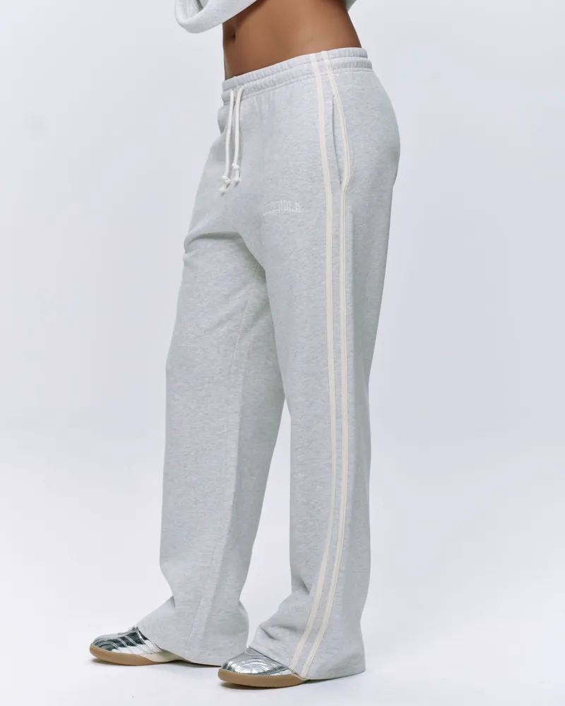 Adanola Varsity Loose Fit Sweatpants - Light Grey Melange/Marshmallow White