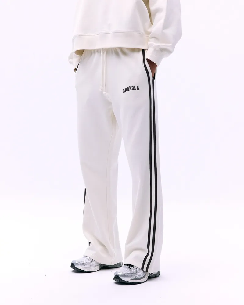 Adanola Varsity Loose Fit Sweatpants - Marshmallow White/Coffee Bean