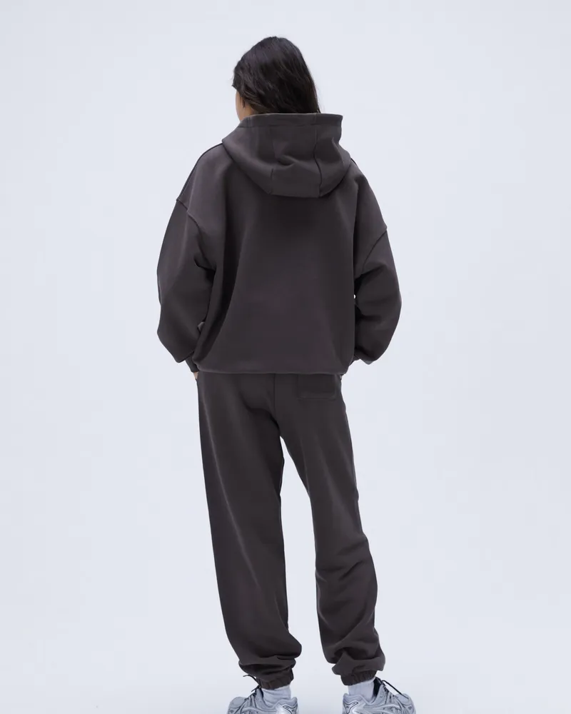 The Adanola Varsity Oversized Hoodie - Coffee Bean is designed to elevate your casual wardrobe. Wear it effortlessly with matching sweatpants for a coordinated look or pair it with jeans for a chic ensemble. The 3-piece hood fit ensures warmth and style, making it perfect for chilly days.