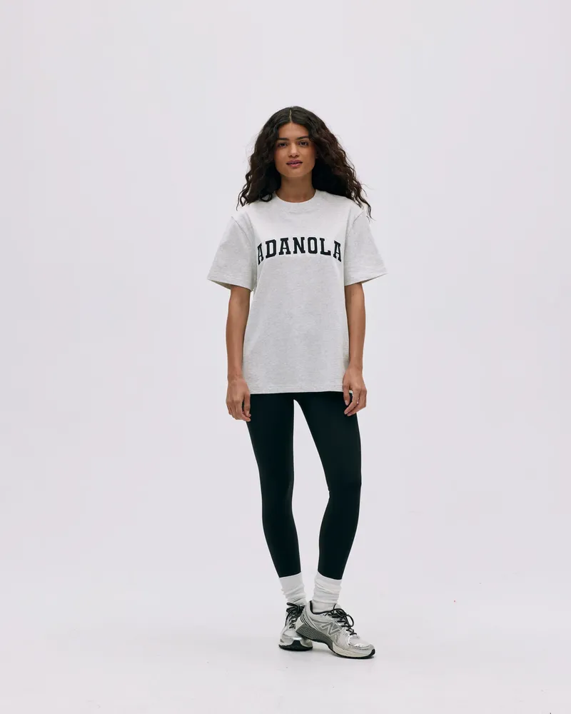 Elevate your casual wardrobe with the Adanola Varsity Short Sleeve Oversized T-shirt in Light Grey Melange/Black. This stylish oversized tee combines comfort and contemporary fashion, making it a must-have for every trendsetter.