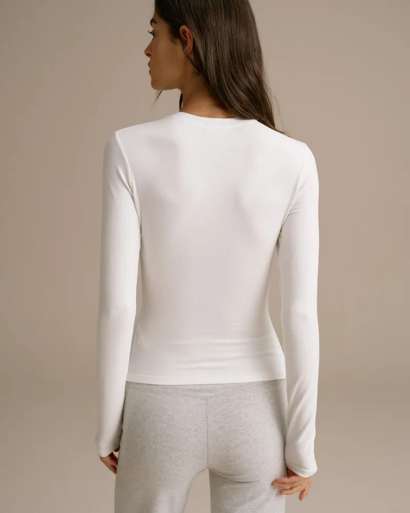 Oplev Det Ultimative Inden For Komfort Og Stil Med Den adanola Bomulds Langærmet Top I Klassisk Hvid. Denne Formtilpassede Top Er Designet Til Dem, Der Sætter Pris På Bløde Basisting, Der Løfter Deres Garderobe. Den Er Fremstillet Af Premium Bomuld Med Et Strejf Af Stretch Og Giver En Flatterende Pasform, Der Fremhæver Din Silhuet.