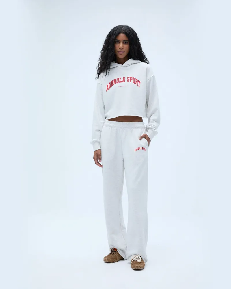 adanola As Raw Hem Crop Hoodie - Gris Clair Chiné/rouge Classique