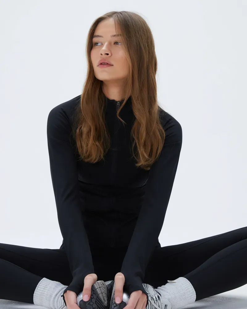 Az adanola Ultimate Hosszú Ujjú Cipzáros Felső - Fekete A Funkcionalitást Elegáns Dizájnnal ötvözi. Tökéletes Edzőtermi órákra Vagy Laza Napokra, Ez A Sokoldalú Darab Kombinálható Ultimate Leggingsünkkel Edzésekhez, Vagy Parachute Nadrággal A Laza Megjelenéshez. Kompressziós Szabása és Simító Sziluettje Biztosítja A Szükséges Tartást, Míg A Hüvelykujj Bújtatók Extra Kényelmet Nyújtanak.