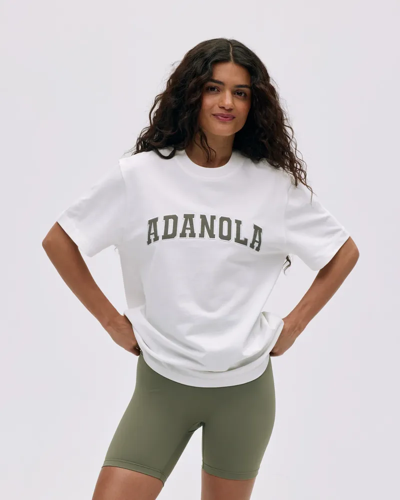 Descoperă Amestecul Suprem De Confort și Stil Cu tricoul Larg Cu Mânecă Scurtă Adanola Varsity în Alb și Verde Măsliniu. Confecționat Din Bumbac 100% Organic, Acest Tricou Gros Este Alegerea Perfectă Pentru O ținută De Zi Cu Zi Fără Efort. Croiala Lejeră Asigură Confort Pe Tot Parcursul Zilei, Fiind Perfect Pentru Ieșiri Casual Sau Relaxare Acasă.