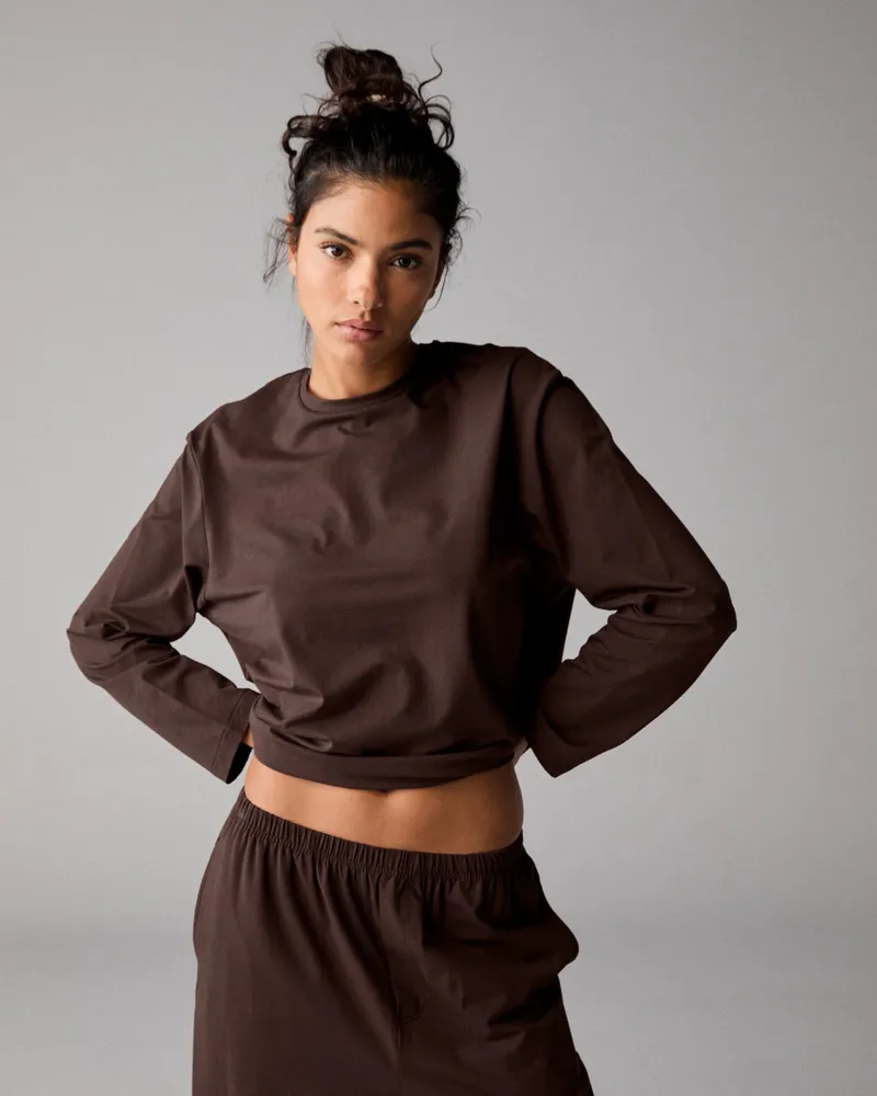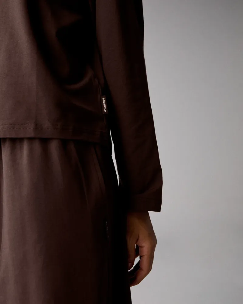 adanola Modal Long Sleeve Oversized T-shirt - čokoládovo Hnedá