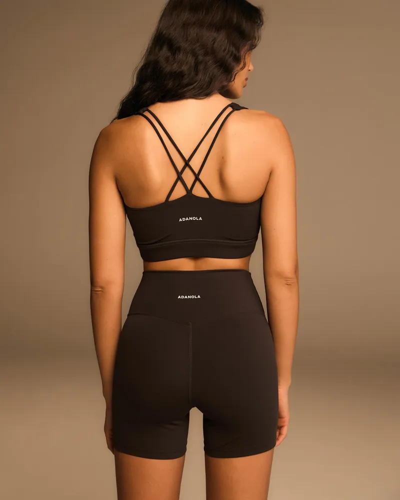 Adanola Ultimate Cross Back BH - Kaffebrun Har En Elegant Design Med Korsade Band Baktill Och Smala Axelband Som Förstärker Dess Chica Utseende. Tillverkad Av Mjukt, Ventilerande Tyg, Säkerställer Denna BH Att Du Håller Dig Bekväm Under Dina Träningspass Eller Vardagliga Aktiviteter. Den Urtagbara Vadderingen Gör Att Du Kan Justera Nivån Av Stöd, Vilket Gör Den Mångsidig För Alla Tillfällen.
